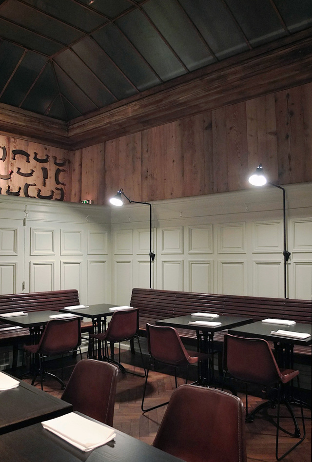 La rica historia de La Hache se remonta al siglo 13 - el año 1257 para ser exactos. Su nombre se mantiene sin cambios desde el principio, dando lugar a especulaciones de pasado oscuro de los lugares como la casa de las ejecuciones. El proyecto juega con el contraste entre un pasado áspero , y un magnífico presente como restaurante de calidad. En el diseño interior se da el mismo juego - materiales a veces ricos y otras veces austeros. Este enfoque es precisamente lo que hace que el espacio resulte acogedor y tenga un montón de personalidad.